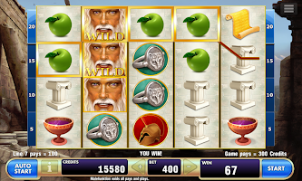 Main Game: Zeus is wild and substitutes for all symbols except Lion. WILD STAYS, Nudges, and Pays features a frequent nudge-functionality which is available with each new game and wager and offers high win potential. If a Wild symbol occurs it pays, and in the next game with the same bet multiplier, it will nudge down by one position and pay again. Stacked Wild symbols can occur on all reels.