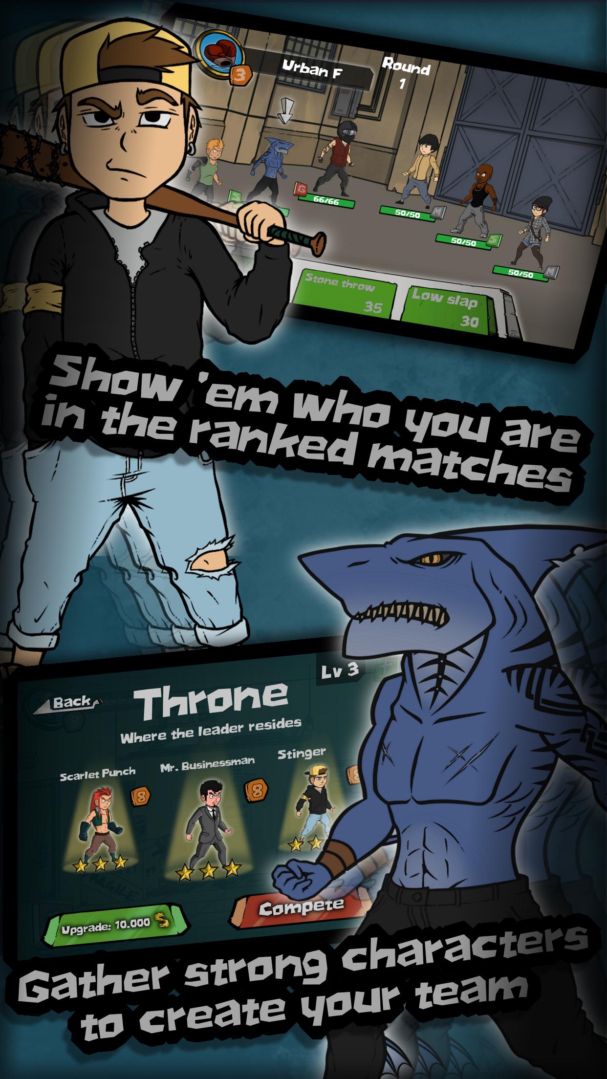 Urban Fighters is a strategy fighting game starring the crazy fighters of Urban City. Collect all the fighters and try to be the best fighting against other players teams. Build your own secret base and upgrade it to the best level. Fight and improve until you rule Urban City.