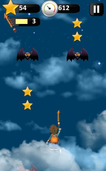 Firecracker kid is an adventure game where the player travels to the sky using a firecracker. The game is about a naughty kid who uses a firecracker rocket to go on an expedition to the space, the child will collect stars, dodge obstacles and collect other firecrackers to stay in the air .Once the kid touches the sky then there is no coming down unless he runs out of firecrackers or hits an object and falls down.