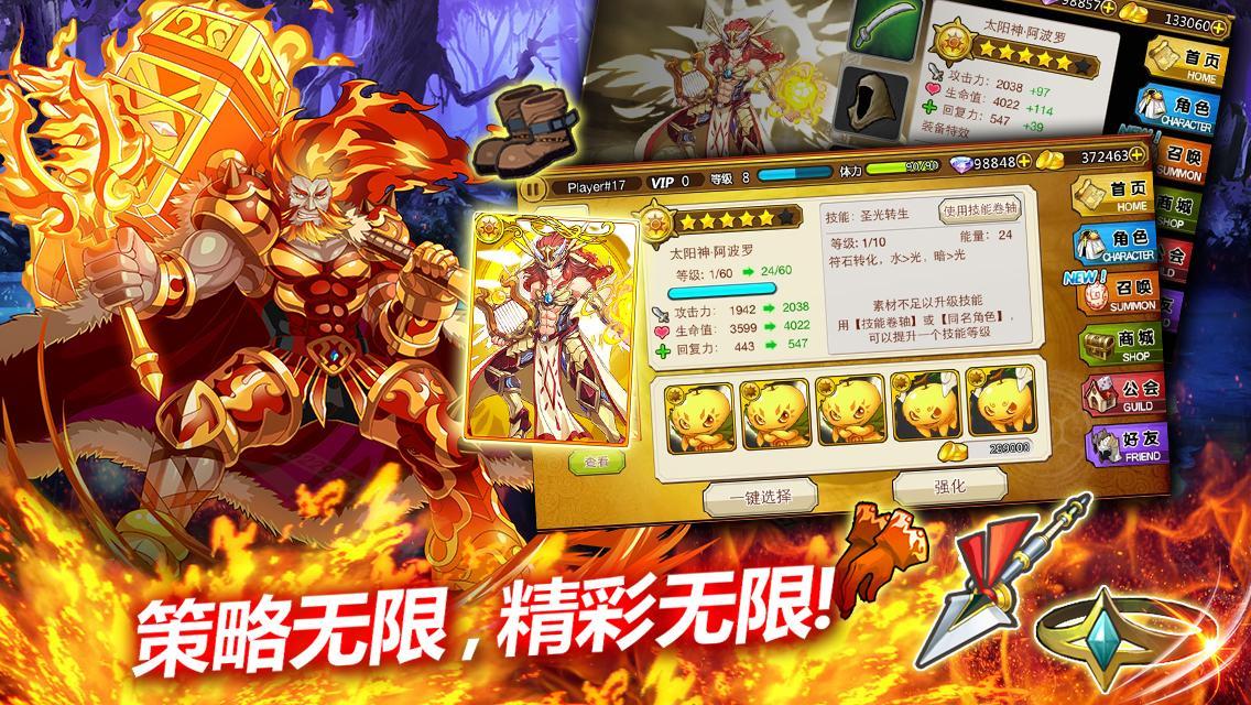 Also, you can collect different gods of olympus, such as Zeus, Athena..etc. How to edit your team and use the strategy to defeat the target become the most interesting part in this game. If you like Heart Stone, then you can't miss God Crush: Puzzle!