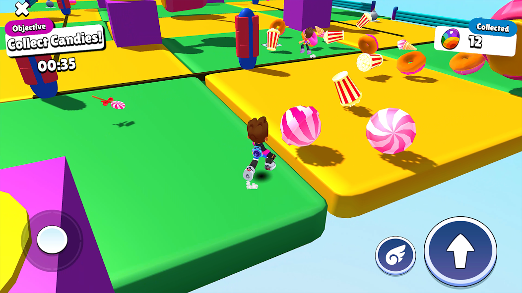 Personalize your Kooply Party Champs avatar with an extensive selection of cool cosmetics. Navigate through thrilling levels equipped with exciting power-ups—deploy bombs, ride skateboards, wield cooking pans, or soar with jetpacks to outplay your opponents.