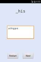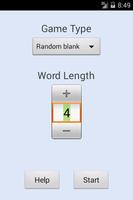 In random blank mode, it uses the Tournament Word List to quiz for 2 through 5 letter words, displaying a blank randomly, in the displayed fragment.