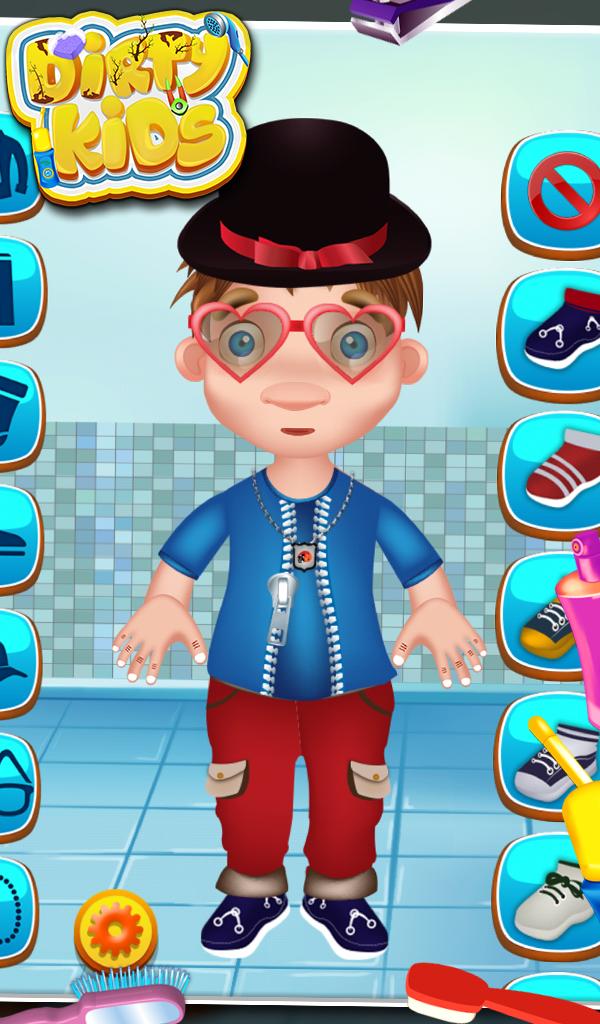 Try Dirty Kids makeover game, dirt cleaning, washing, dressing, makeover...