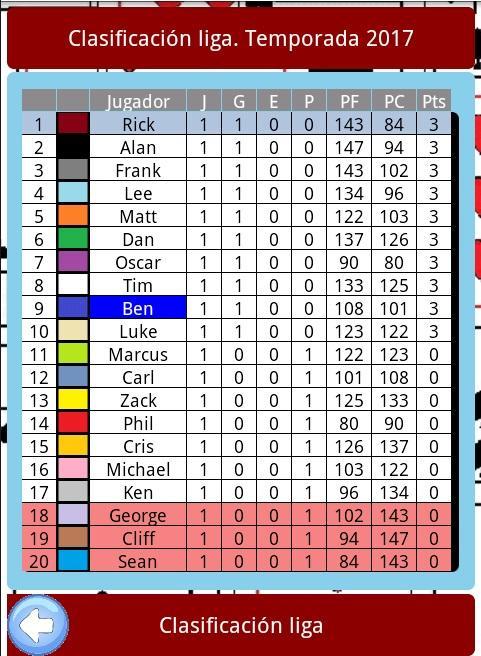 - Calendar and classification updated after each day