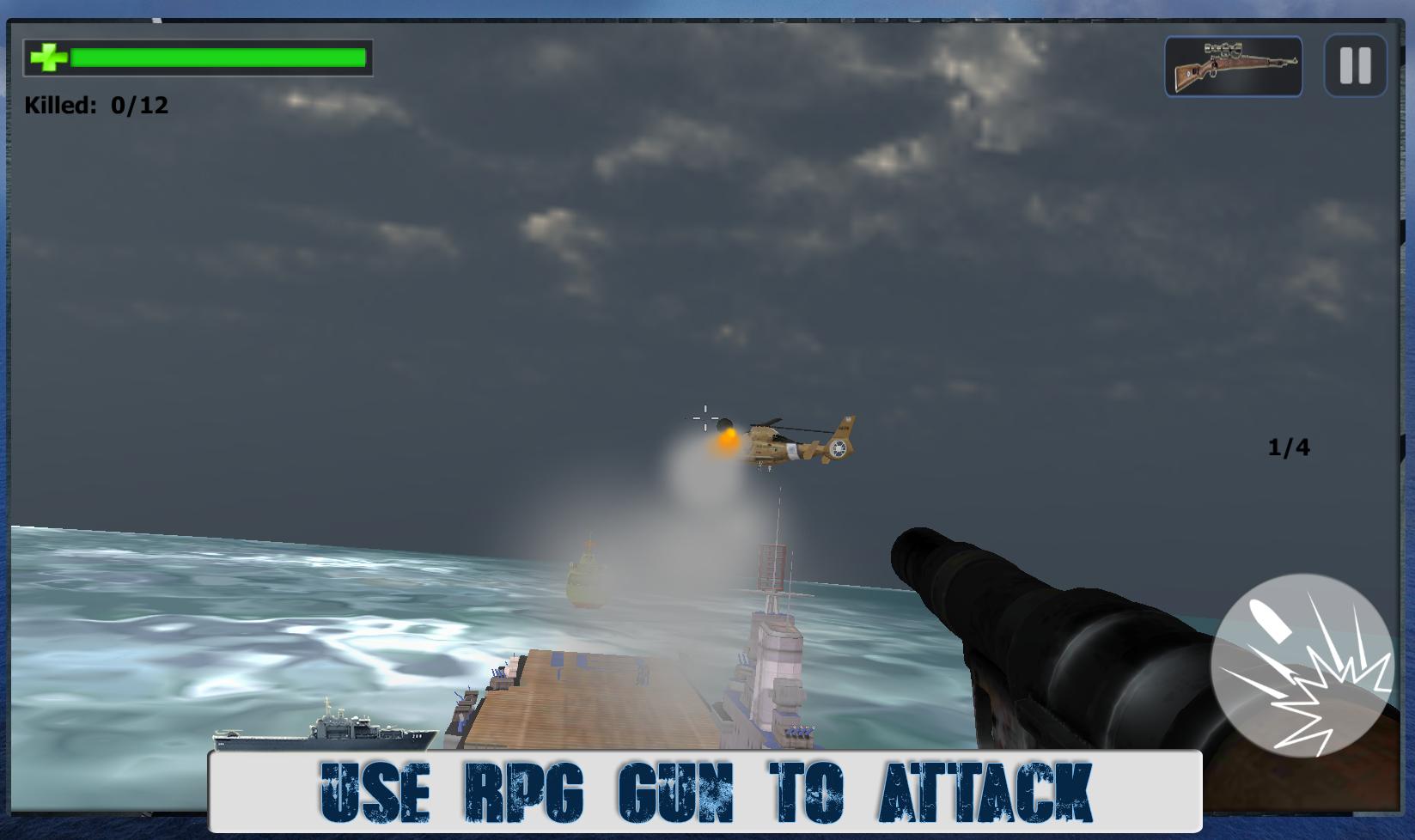 Save Pakistan, being in Navy Surgical Strike takes you on thrilling combat Navy fighting like never before in navy games. But wait! it does not stop there. Not only do you need to just Navy fighting but you have an air support with only one gunship helicopter and multiple weapons, destroy and eliminate enemies on ship and opponent’s deadly gunship helicopter. it is highly challenging experience for first person shooting player with sniper and rocket launcher. World War is being fought in deep sea and you have to lead the battle.