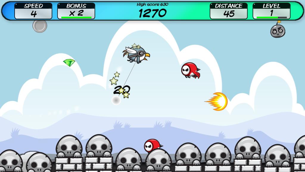 Control your bird using touch as the level speed increases. Survive as long as you can while grabbing those sweet bonuses and powerups to climb the online Leaderboard!