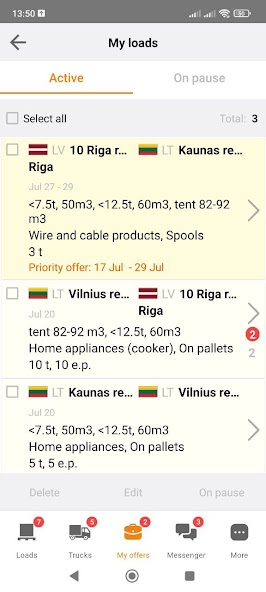 Proposal yang paling umum dari situs ini transportasi kargo dari Lithuania, Latvia, Estonia (Negara -negara Baltik), serta kargo ke / dari Eropa Barat dan Rusia. 7000-8000 penawaran beban ditempatkan di database setiap hari dan sekitar 10000-12000 layanan transportasi angkutan ditawarkan juga dalam berbagai arah.