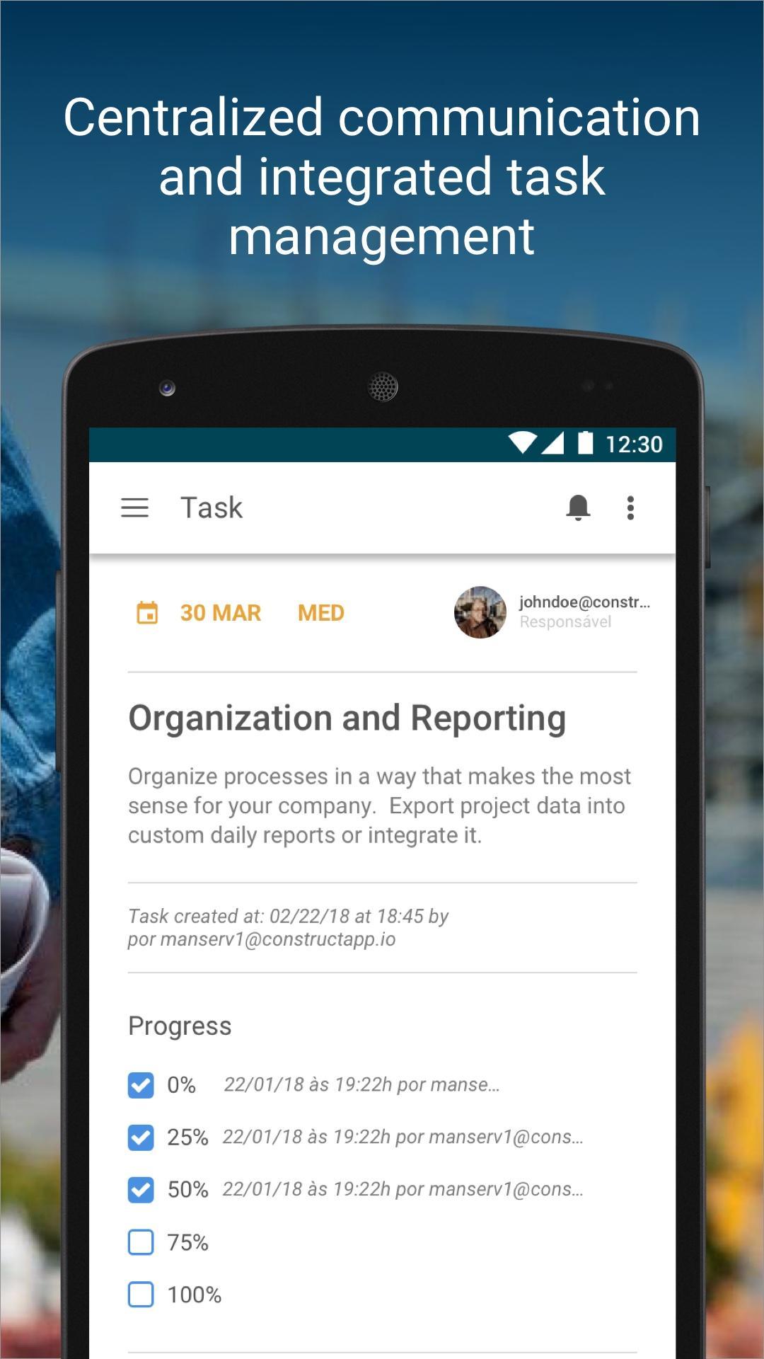 - Kelola pelaksanaan proyek konstruksi secara real-time di PC atau perangkat seluler Anda.