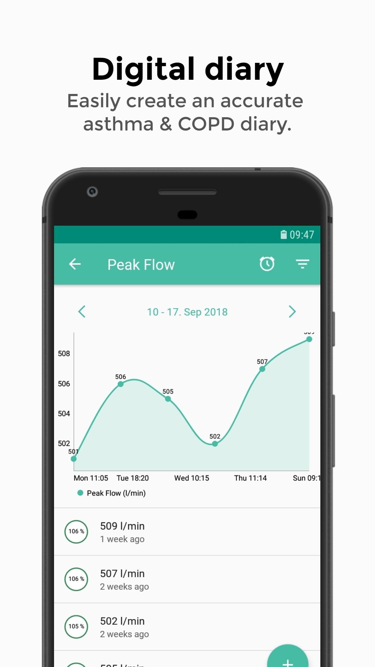 Aplikasi SaniQ Asthma mendukung Anda dengan tantangan harian: itu andal mengingatkan Anda untuk melakukan pengukuran dan minum obat. Anda juga dapat mengelola obat Anda di aplikasi.
