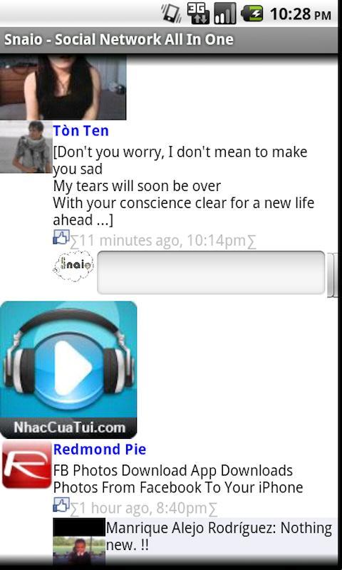 Menyediakan lingkungan yang ramah bagi pengguna SNAIO untuk memposting komentar mereka tentang teman atau status pribadi atau pembaruan gambar. Komentar ini akan ditransfer ke dinding Facebook atau Twitter juga.