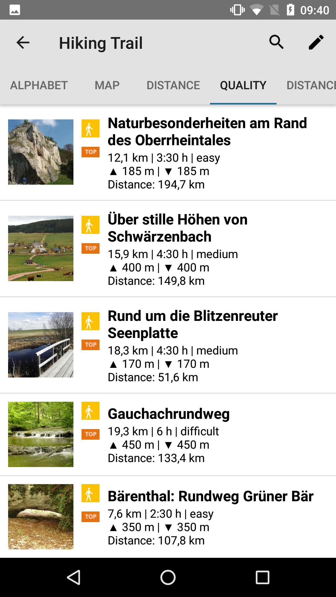 Sorotan khusus dari aplikasi ini adalah peta topografi. Peta ini berisi seluruh jaringan jalur yang terdaftar secara resmi di Baden-Württemberg dan dapat diperbesar hingga skala 1: 25.000. Semua tur, tempat menarik, dan peta dapat disimpan secara offline.