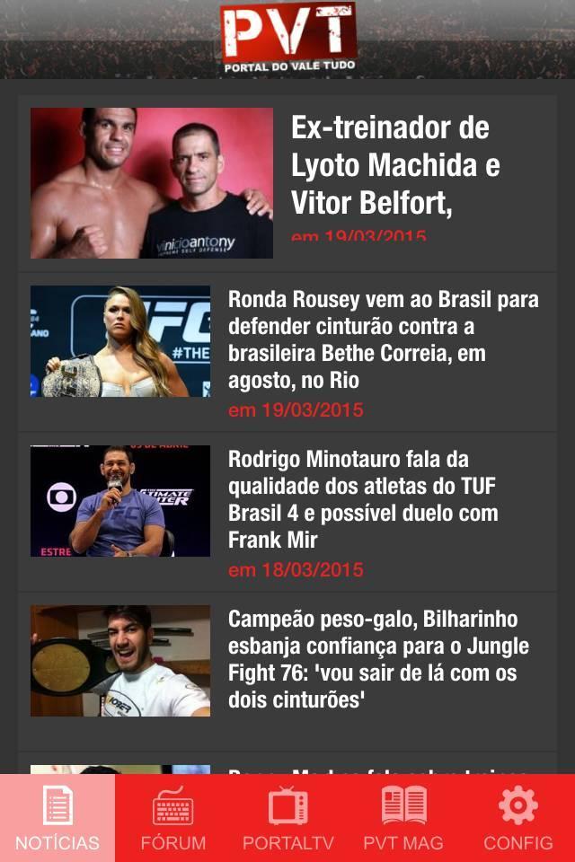 Dianggap sebagai salah satu situs pertarungan teratas dunia, Portal Vale Tudo meluncurkan aplikasi MMA untuk smartphone. Kunjungi berita langsung, tonton video dan diskusikan semua tentang dunia pertarungan di forum diskusi kami. Semua di telapak tangan Anda!