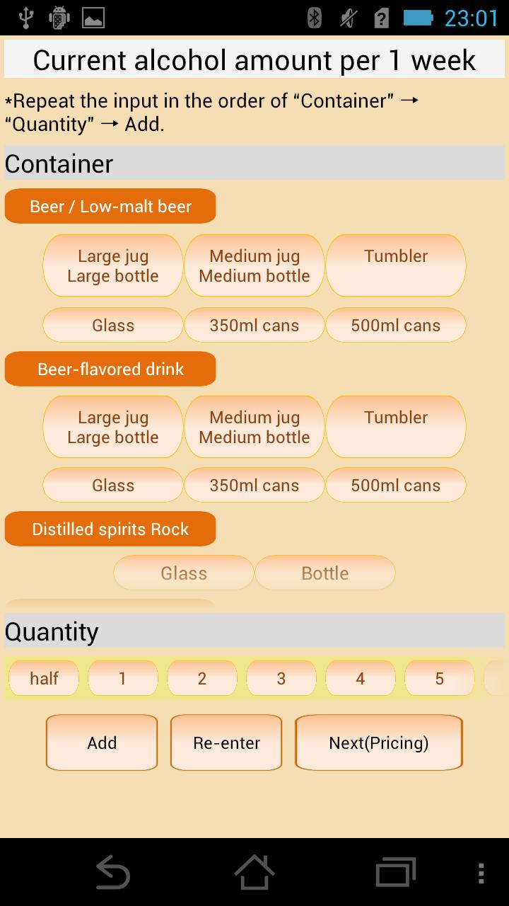 2. masukkan jumlah minum saat ini (per 1 minggu).