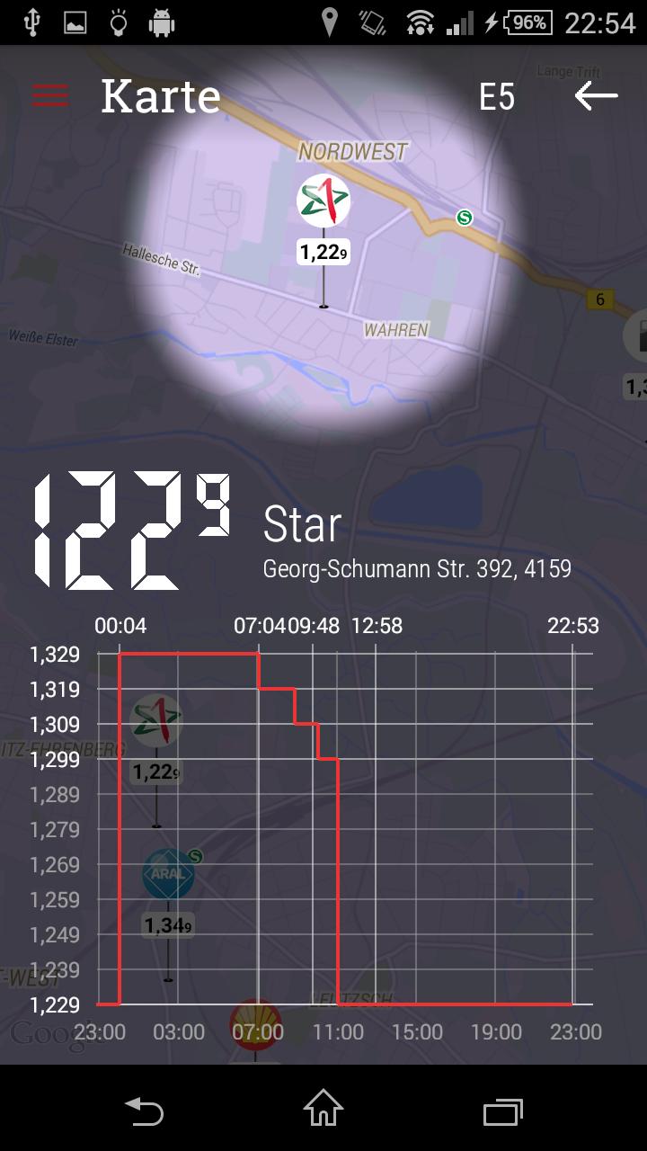 Untuk setiap pompa bensin individu itu menunjukkan kepada Anda bagaimana harga akan berkembang dalam 24 jam ke depan.