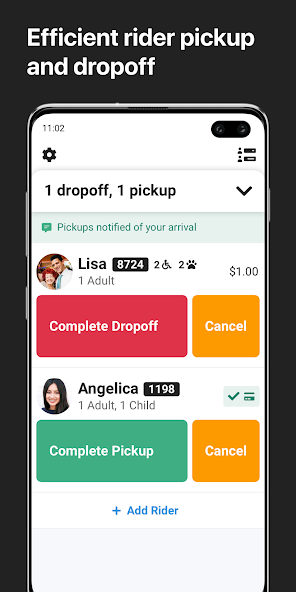 - Saat mengemudi di depan dan tengah, Anda selalu dapat menyeret tampilan rencana perjalanan Anda saat Anda berada di perjalanan, atau melihat siapa yang saat ini berada di dalam kendaraan dan drop awal jika perlu.