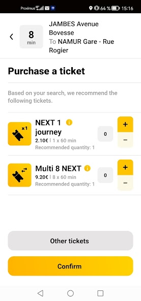 Beli tiket TEC dan SNCB Anda menggunakan aplikasi TEC untuk perjalanan segera di kedua jaringan.