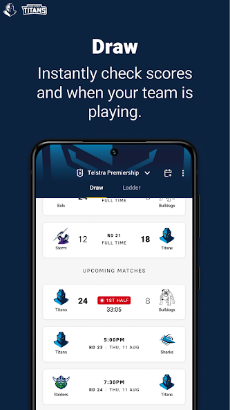Dengan antarmuka yang diperbarui dan navigasi yang lebih baik, aplikasi resmi Gold Coast Titans dikemas dengan fitur dan konten, termasuk:
