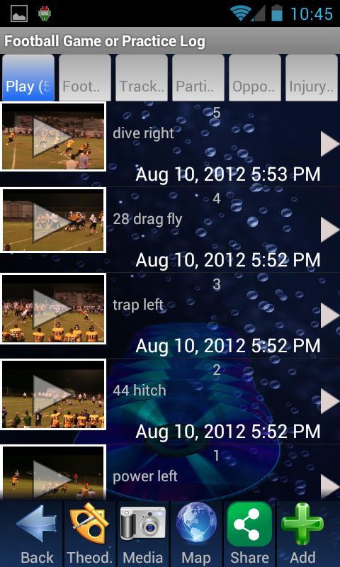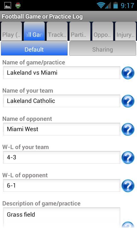 Football Game or Practice Log adalah aplikasi android mayor yang memungkinkan pelatih, orang tua, staf, dll. Untuk mendokumentasikan setiap permainan selama permainan atau latihan termasuk video, statistik, dan catatan. Bahkan, kami membayangkan beberapa orang yang ditugaskan untuk mengumpulkan informasi spesifik tentang setiap permainan yang membuat pengumpulan data sederhana (misalnya, satu orang mengumpulkan yard yang diperoleh sementara yang lain merekam para pemain yang terlibat). Anda juga dapat mengizinkan keluarga, teman, pemain, pelatih, dll. Untuk melihat data dan video selama (langsung) atau setelah permainan atau latihan membagikannya melalui situs web yang dapat Anda buat pada MajorForms atau melalui Facebook atau Google+, Twitter, email, dll. Setelah drama diunggah ke situs web Anda, Anda dapat mengedit data, augment statistik, membuat laporan dan/atau peta, dan mengunduh data Anda ke data Anda, Anda dapat mengedit data. Jika Anda tidak menggunakan ponsel cerdas atau tablet Anda untuk mengambil video, setiap putaran dapat ditambahkan secara otomatis ke acara Play dari kamera lain setelah permainan atau berlatih di situs web kami. Anda tidak perlu memiliki akses ke internet untuk menjalankan aplikasi, tetapi jika Anda melakukannya, Anda dapat mengunggah data Anda dan melestarikannya. Selain itu, aplikasi ini dilengkapi dengan alat -alat seperti dokumentasi cuaca yang mencatat suhu, tekanan, kelembaban, arah angin, dll. Untuk setiap permainan. Cobalah, gratis. Setelah permainan atau latihan selesai, Anda dapat membuat video secara otomatis (program kami memesan semua permainan dan mengintegrasikannya ke dalam video yang dapat diunduh) untuk orang tua, pelatih, atau pemain. Lihat aplikasi serupa di www.majorforms.com.