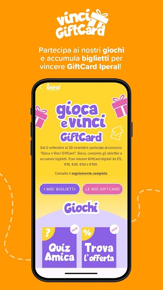 - bahkan lebih kenyamanan dengan "Play and Win"! Ambil bagian dalam permainan kami dan menumpuk tiket untuk mencoba memenangkan kartu hadiah Iperal digital!