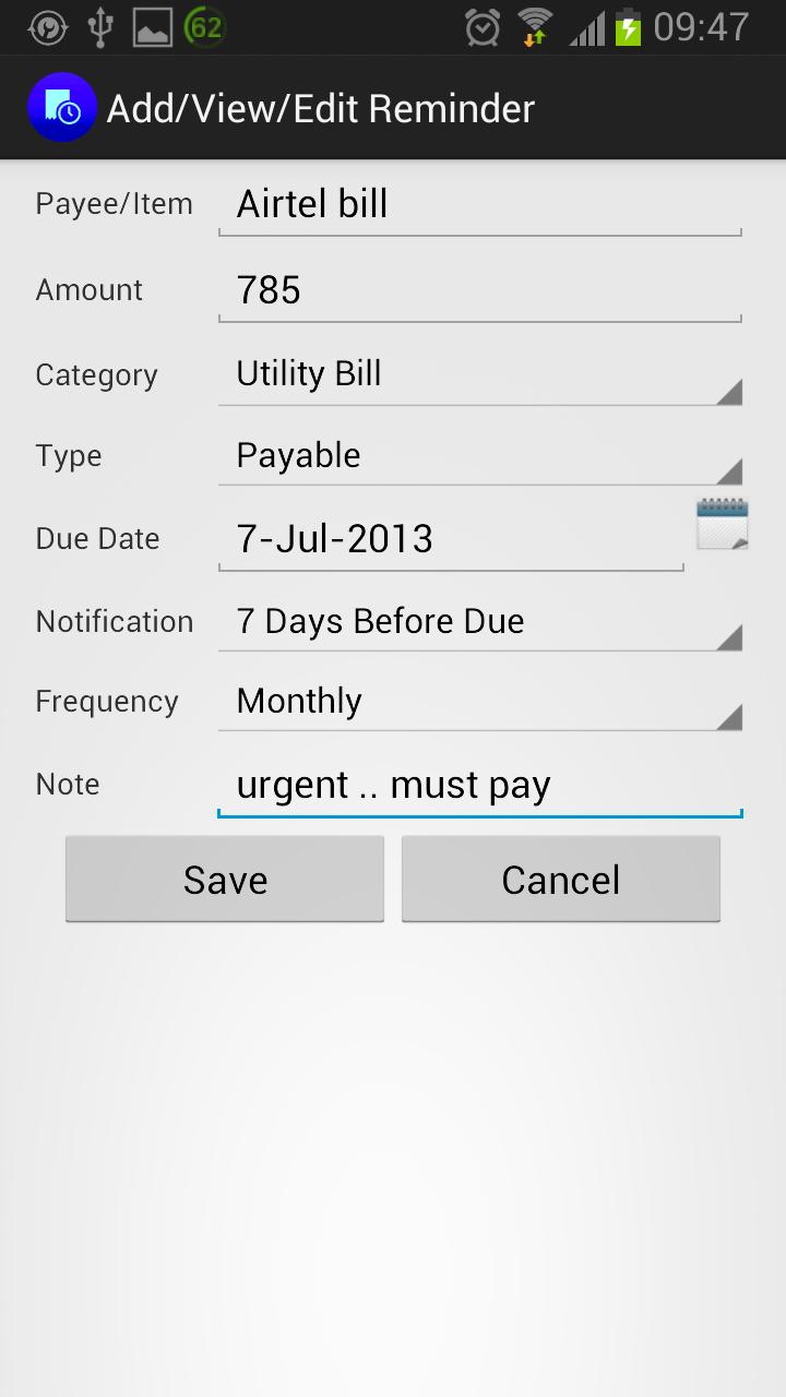 Aplikasi Android ini adalah organizer tagihan paling bersih dan profesional yang membantu Anda membuat ketegangan hidup Anda bebas dengan mengingatkan Anda untuk membayar tagihan terlepas dari jadwal sibuk Anda.