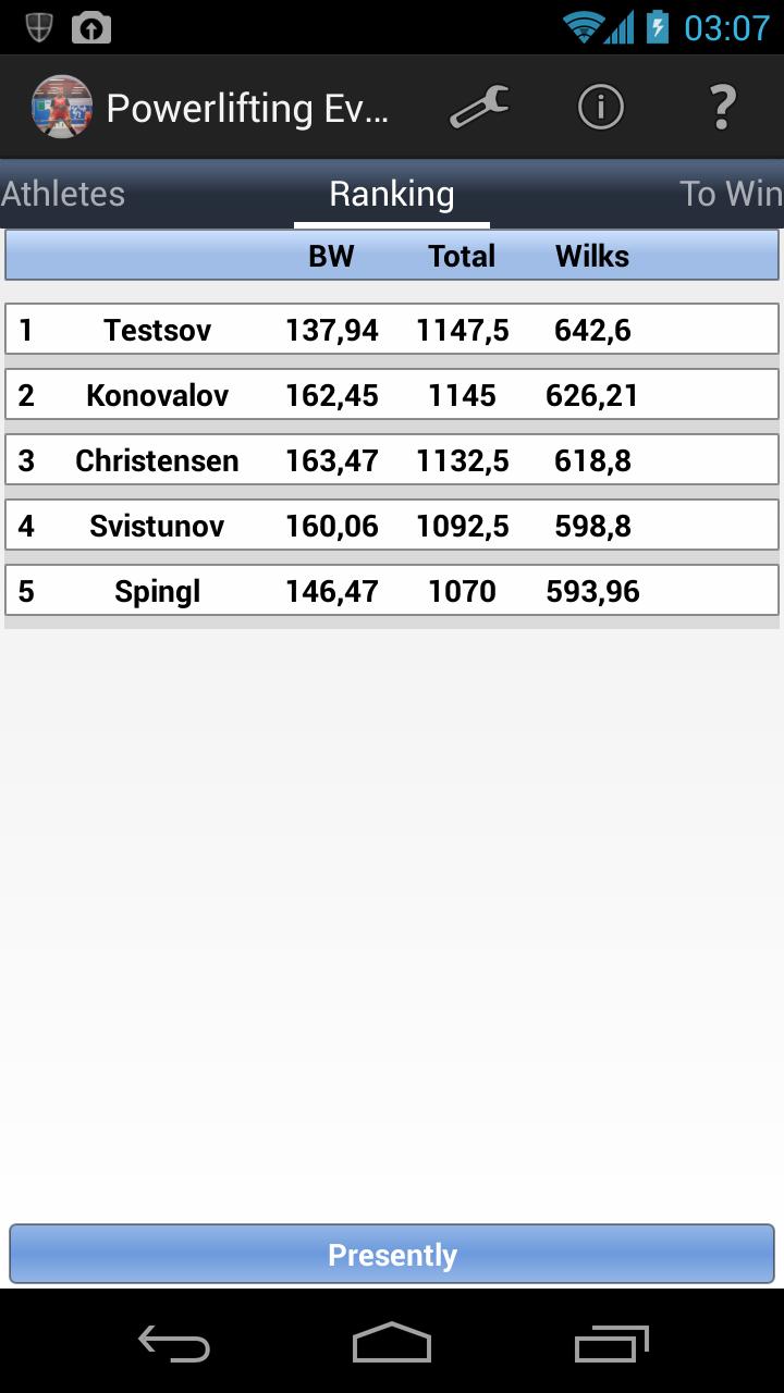 Tab ini memungkinkan Anda untuk mengetahui skor minimum untuk mengalahkan lawan Anda. Misalnya, Anda dapat mengetahui berapa kilogram total yang dibutuhkan, atau berapa kilogram yang dibutuhkan pada deadlift untuk mengalahkan atlet yang ditentukan.