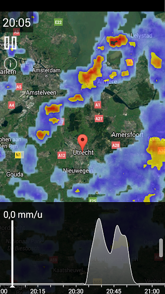 - Animasi awan hujan yang halus memungkinkan Anda untuk melihat ke saat apa situasinya dan akan menjadi.