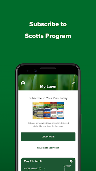Aplikasi My Lawn dari Scotts menyederhanakan perawatan rumput dengan membuat rencana pemeliharaan rumput yang mudah diikuti sehingga Anda tahu produk yang tepat untuk digunakan pada waktu yang tepat.