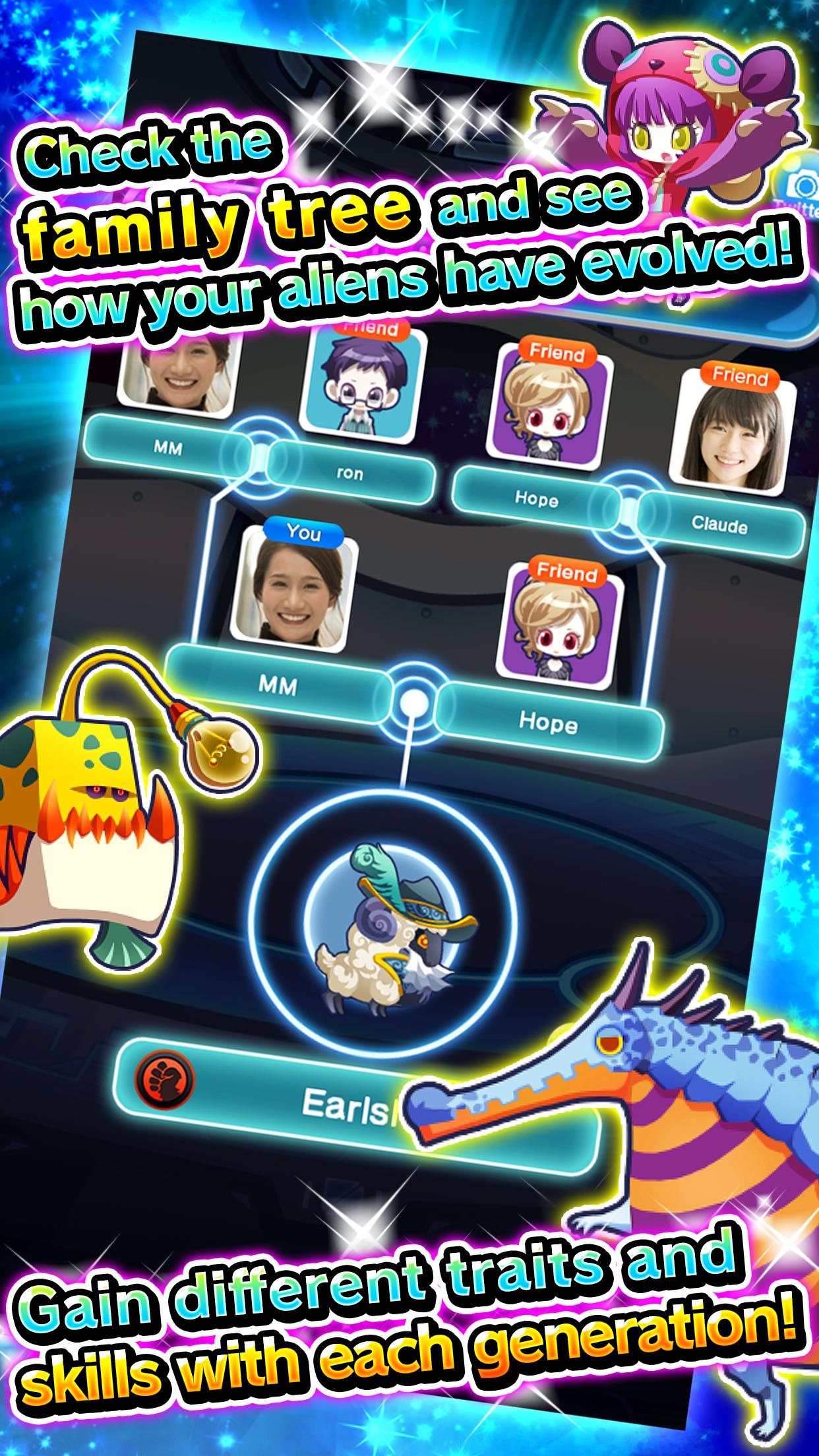 Temukan pemain lain dari seluruh dunia dan membiakkan alien bersama untuk memperkuat, berevolusi, dan bahkan bermutasi!