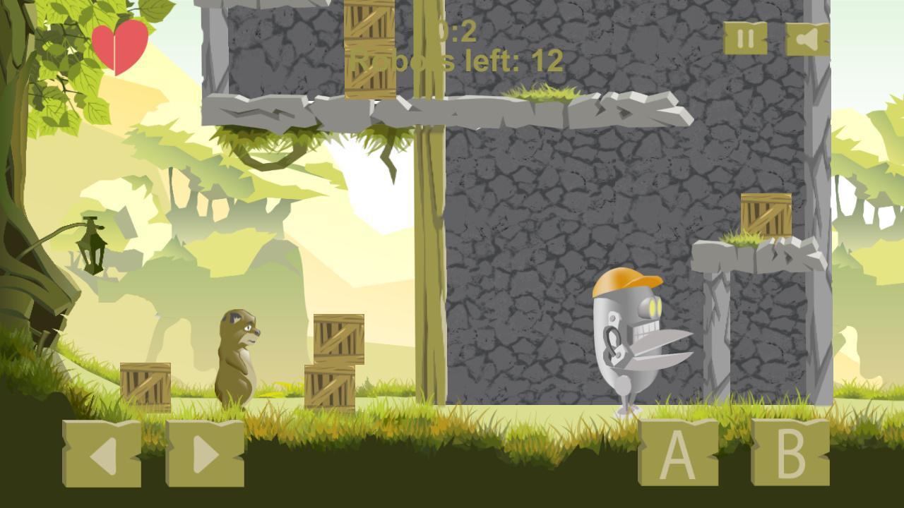 Robot datang dengan kayu dan menggergaji pohon, tetapi Bear ingin menyelamatkan hutan mereka, membantunya! Temukan dan hancurkan semua robot. Perjalanan dan menyelesaikan teka -teki.