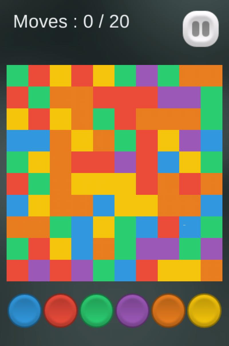 Isi papan dengan satu warna. Mulailah dengan sudut kiri atas papan dan perluas kerajaan warna Anda dengan mengisi dengan warna yang berbatasan. Kesenangan dan level yang tak ada habisnya.