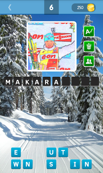 Dalam permainan Anda harus menebak biathlete yang ditampilkan di gambar