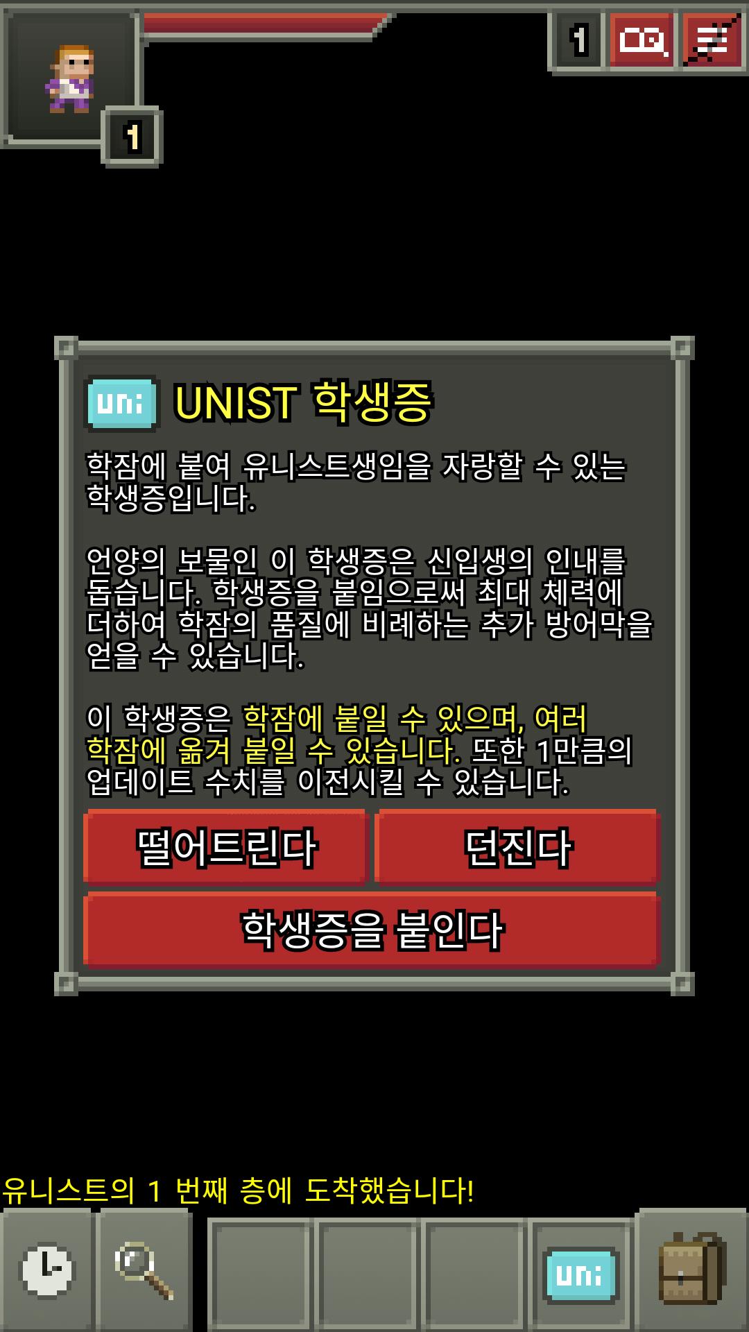 UNIST Pixel Dungeon adalah permainan RPG seperti log di tim klub komputer yang diperbarui untuk siswa hexa!