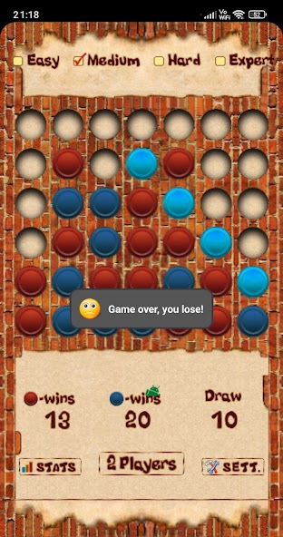 Game Four In A Line adalah game puzzle klasik yang juga dikenal sebagai empat berturut -turut dan menawarkan: