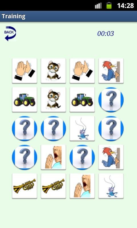 Memori audio lebih dari sekadar permainan memori, ini adalah aplikasi pendidikan gratis untuk Android Market yang akan membantu Anda mengembangkan konsentrasi dan rasa pendengaran Anda dengan cara yang menyenangkan! Anak -anak, orang tua, siswa musik ...