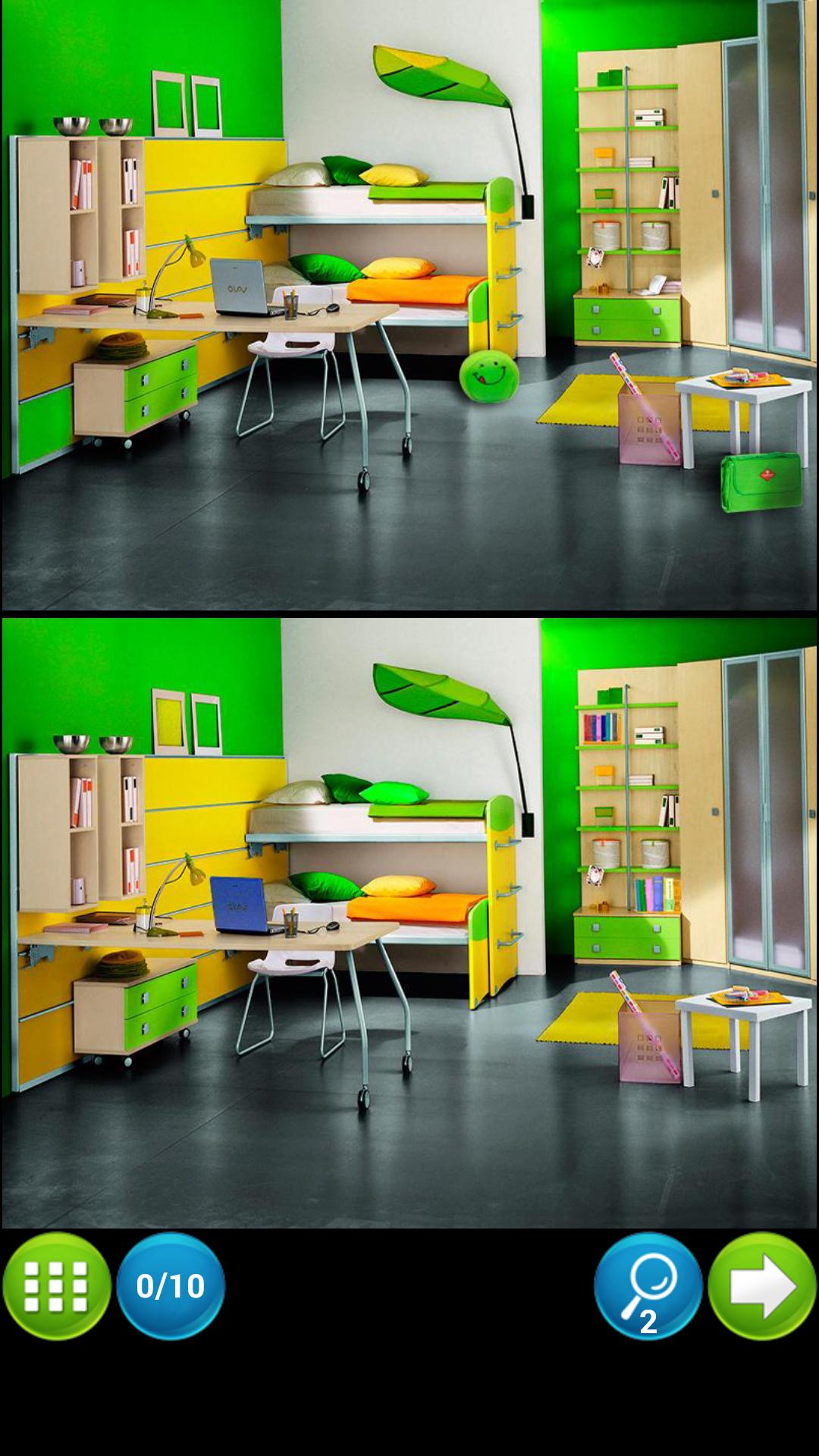 Ini adalah permainan puzzle yang dikenal sebagai "Find the Difference", "Difference Game", atau "Spot the Difference" di mana Anda harus menemukan sepuluh perbedaan antara 2 gambar. Jika Anda macet, ada dua petunjuk untuk membantu Anda!
