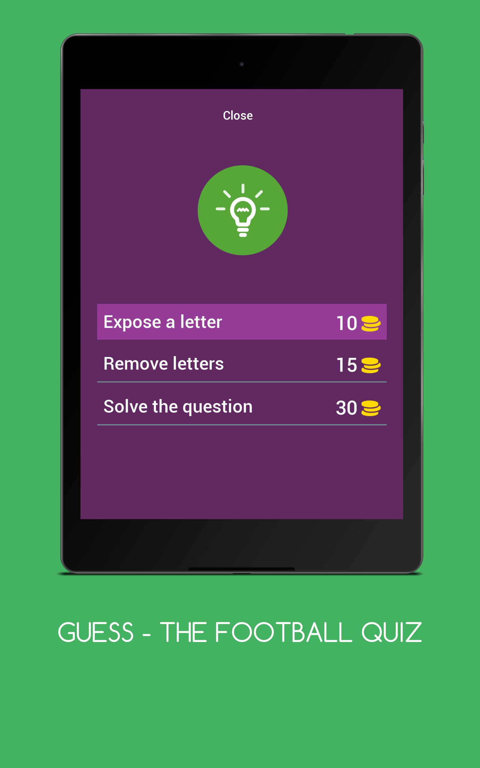 Diciptakan oleh tim pejuang yang sedang naik daun. Kuis yang mengejutkan, mendebarkan dan merangsang. Pembunuh waktu yang tepat. Menyenangkan untuk bermain dengan teman dan keluarga. Tentunya membuat Anda energik! Foto pemain telah diedit untuk menghindari serangan hak cipta. Koin dapat dibeli dalam game untuk bantuan. Jadi, tebak memiliki semuanya! Catatan: 1. Level baru akan ditambahkan setiap hari.2. Pembelian dalam aplikasi akan segera tersedia.3. Multiplayer Play juga akan tersedia nanti.