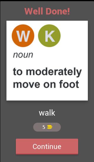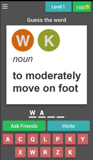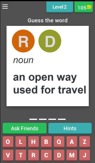 Setiap level dilengkapi dengan huruf pertama dan terakhir kata sebagai petunjuk Anda, bersama dengan deskripsinya, dan bagian dari ucapan (kata benda, kata kerja, kata sifat, dll.).