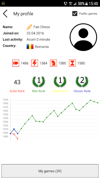 * Mainkan - Mainkan Catur dengan teman -teman Anda atau pemain catur lain di seluruh dunia atau melawan mesin catur. Juga, Anda dapat melacak kemajuan Anda dengan menerima peringkat catur dan bersaing untuk melihat nama Anda setinggi mungkin di papan peringkat.