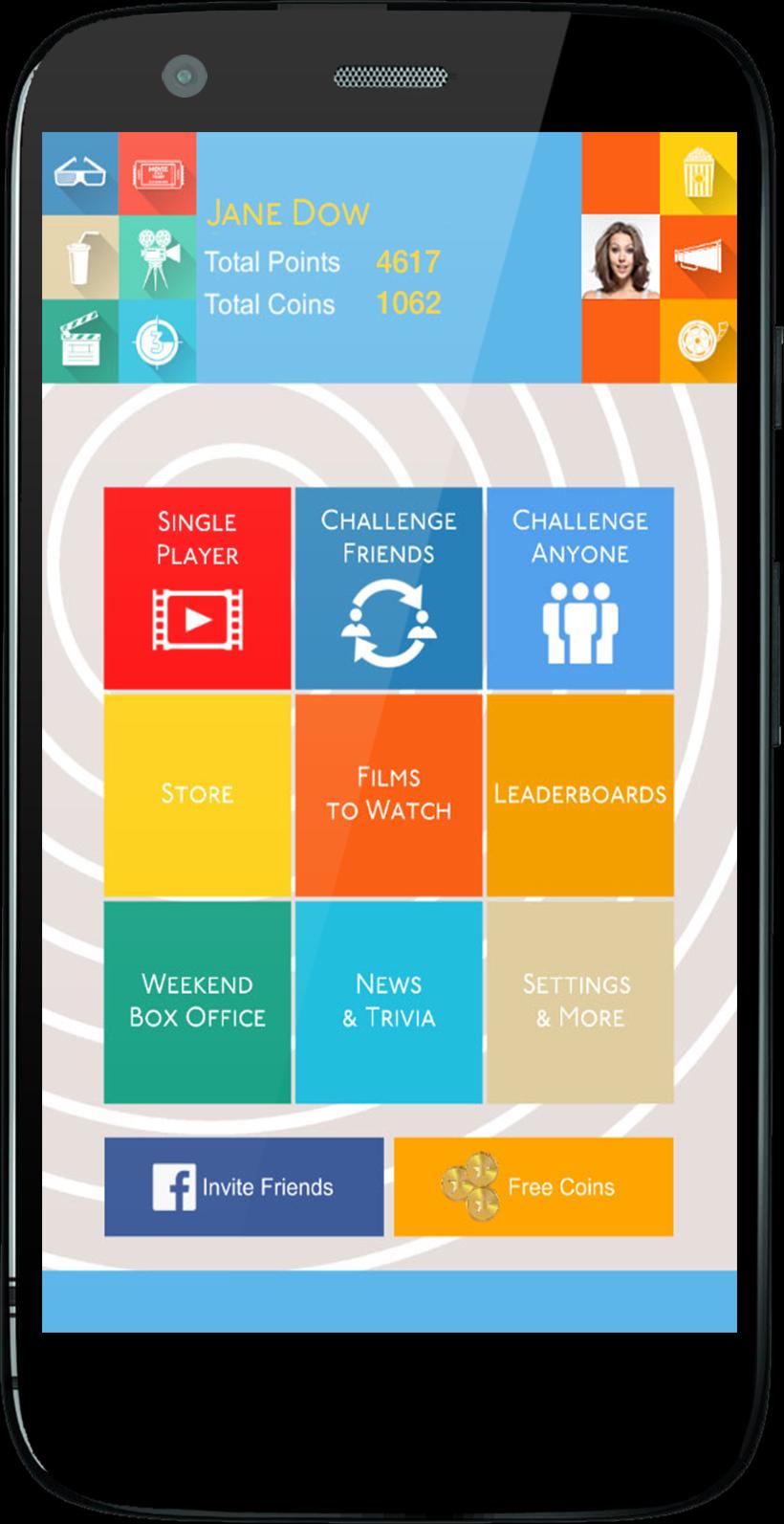 Kami mengatakan bahwa The Film Quiz berbeda! Jadi, kami telah mengaktifkan mode bermain yang berbeda sehingga Anda tidak pernah bosan saat juga bersosialisasi! Anda dapat memilih mode pemain tunggal untuk menantang diri sendiri atau mode multipemain untuk menantang dan bermain dengan teman Facebook Anda atau pemain lain. Akhirnya, satu -satunya game trivia seluler untuk penggemar film tersedia untuk Android!