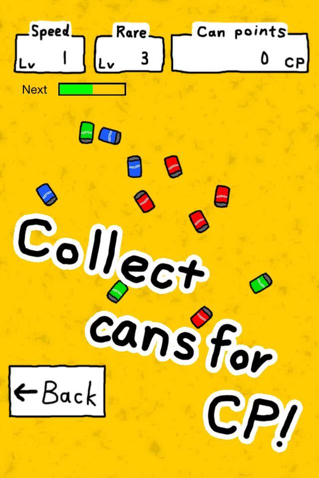 Geser untuk mengumpulkan kaleng kosong dan mengumpulkan poin kaleng (CP)!