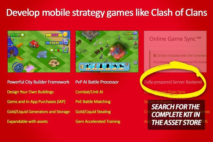 Game demo dibangun dengan kit game pembangunan kota untuk persatuan. Dengan kit game ini, Anda dapat mengembangkan permainan strategi seluler dan berperang melawan desa pemain lainnya. Menangkan rampasan dan hancurkan pangkalan dalam demo game fantasi ini.