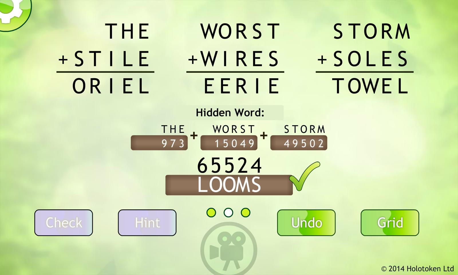 Sebagai twist tambahan, setiap teka -teki berisi makna tersembunyi. Gunakan huruf yang Anda selesaikan untuk memecahkan kode frasa tersembunyi. Ungkapan (yang sebagian besar berhubungan dengan film -film populer - karena kita pecinta film) adalah petunjuk untuk menemukan kata rahasia tersembunyi yang licik dalam persamaan. Twist tematik kecil ini memberikan akhir yang memuaskan setiap saat.