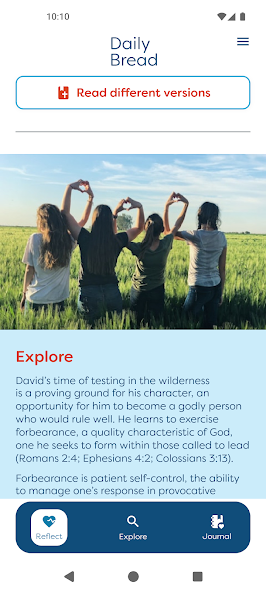 •ユーザーアカウントをセットアップして、個人ジャーナルにアクセスし、お気に入りのリフレクションを追加し、他の人とコンテンツを共有し、聖書の読書を追跡します。