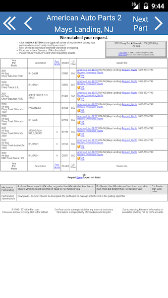 エンドユーザーライセンス契約:http://search2250.used-auto-parts.biz/inventory/android_eula.htm