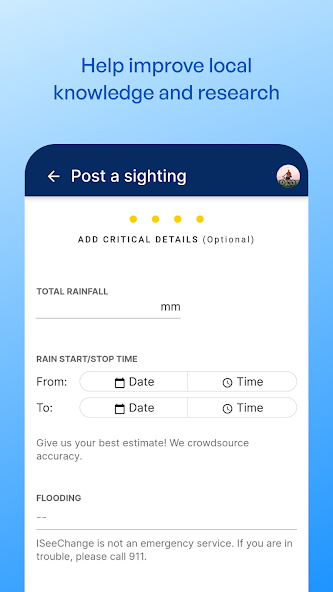 ISeeChange 、コミュニティが天候と気候が環境と日常生活にどのように影響するかを観察することを許可しています。時間が経つにつれて、これらの微小な吸引は、都市、エンジニア、科学者、研究者が気候が変化し続けるにつれて、コミュニティへのモデルを改善し、対応し、保護できるようにする記録を提供します。