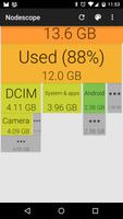Nodescope 、USBストレージのフォルダー構造を表すBOSのツリーを示しています。各ボックスの色とサイズは、そのファイルまたはディレクトリのディスク使用量を表します。各フォルダーの内容は、そのフォルダーのボックスの下に表示されるため、階層にドリルダウンできます。