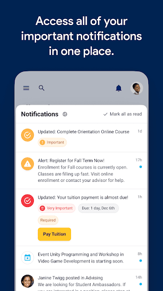 +プッシュ通知:重要なキャンパス通知と緊急アラートを受信します。