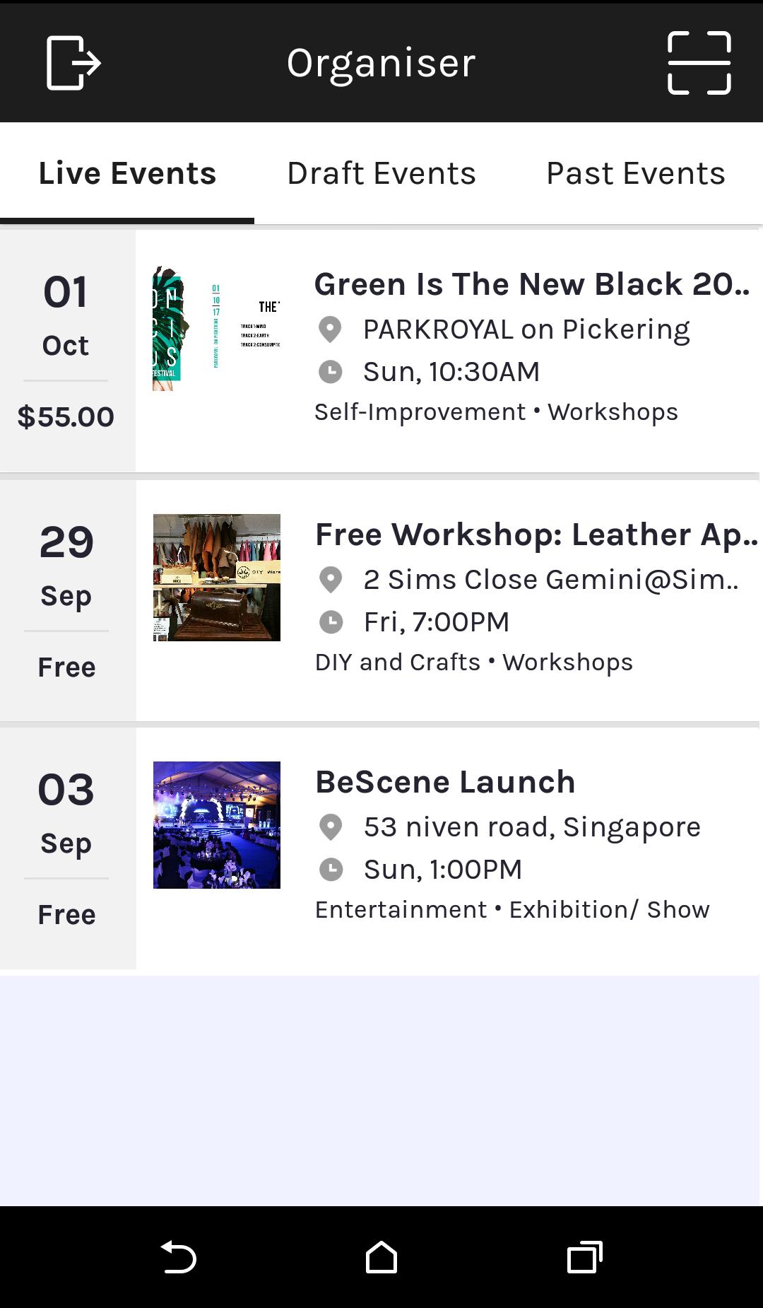 BeScene Organiser + QR scanner