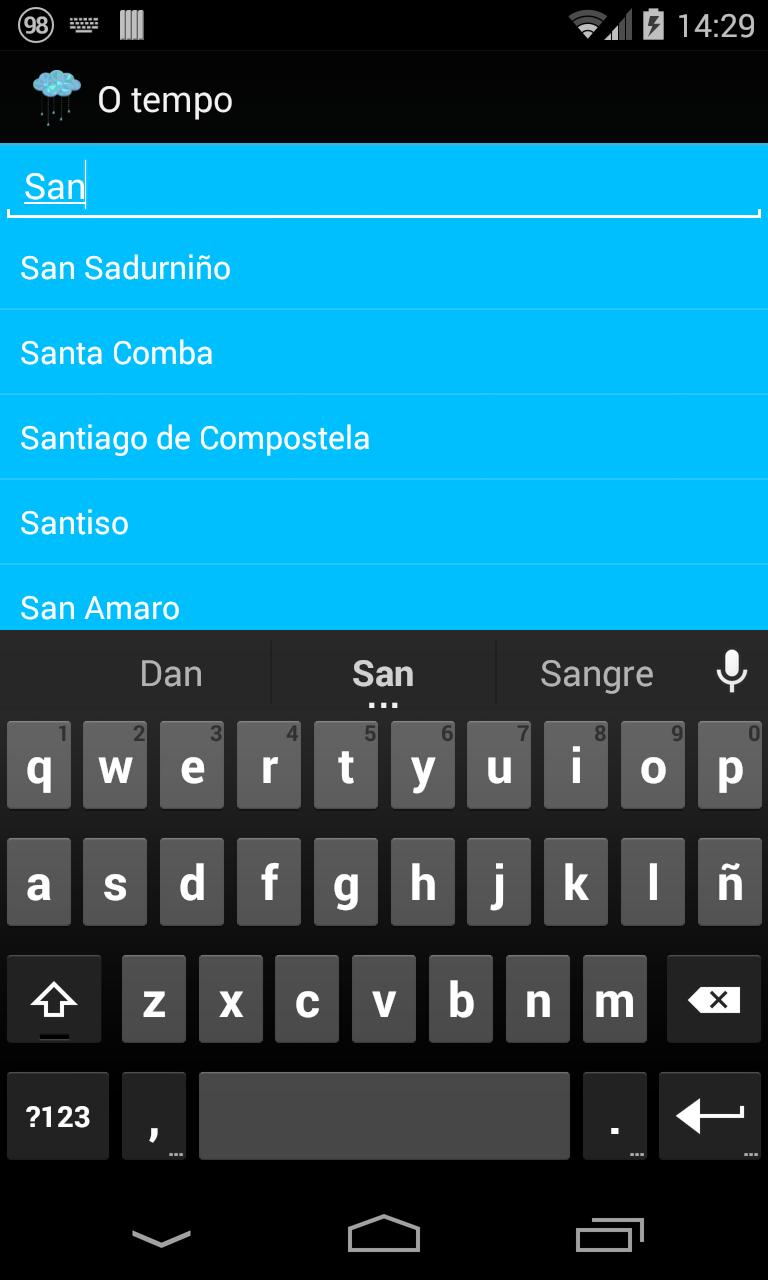 市庁舎を選択して、 O tempo予測にアクセスしてください。当初、サンティアゴ・デ・コンポステラを見ることができますが、その上に触れると、ガリシアのすべての自治体でリストにアクセスできます。