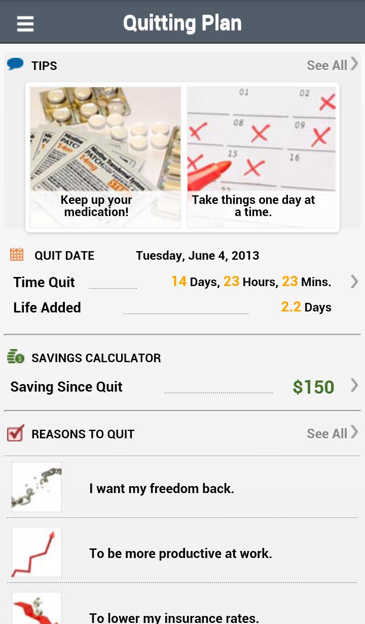 終了日を設定し、進捗状況に従って、あなたが非喫煙者であるかを追跡してください!